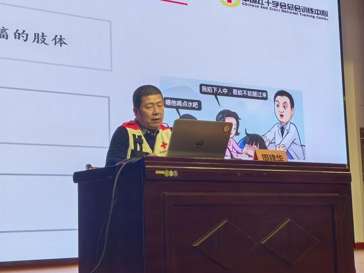 本次培训邀请市红十字应急救护讲师周建华做专题培训。周建华具有红十字救护培训教学师资、美国心脏协会(HS)培训导师、环球计划(人道主义援助)助理教练等多项资质,擅长领域包括急救知识宣传、应急救护培训、儿童安全教育等多个方面。